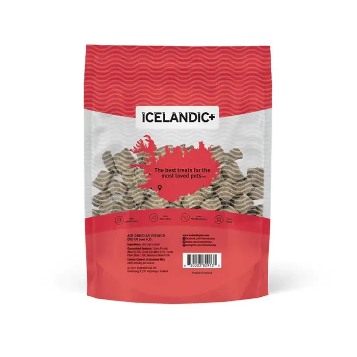 For freshness and convenience, our treats are packaged in a stand-up resealable bag. Each package contains net wt. 3.0 oz. of Icelandic+ Cod & Lobster Combo Bites Fish Dog Treats.