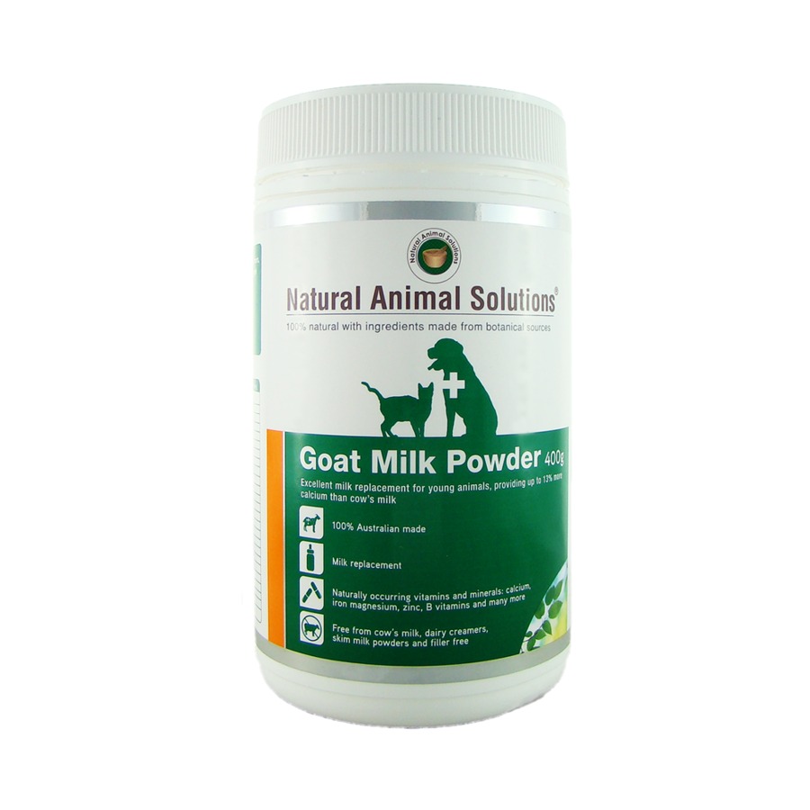Natural Animal Solutions® Goat Milk Powder is rich in complex nutrients and its low lactose content makes it safe for weaning young tummies. It is an ideal supplement for cats, dogs, kittens, puppies, livestock and wildlife.